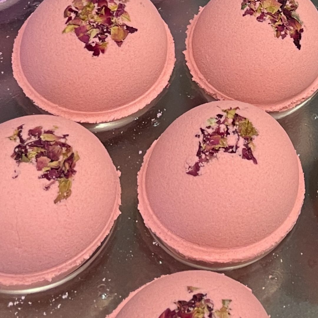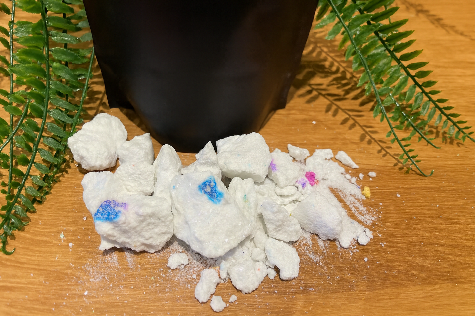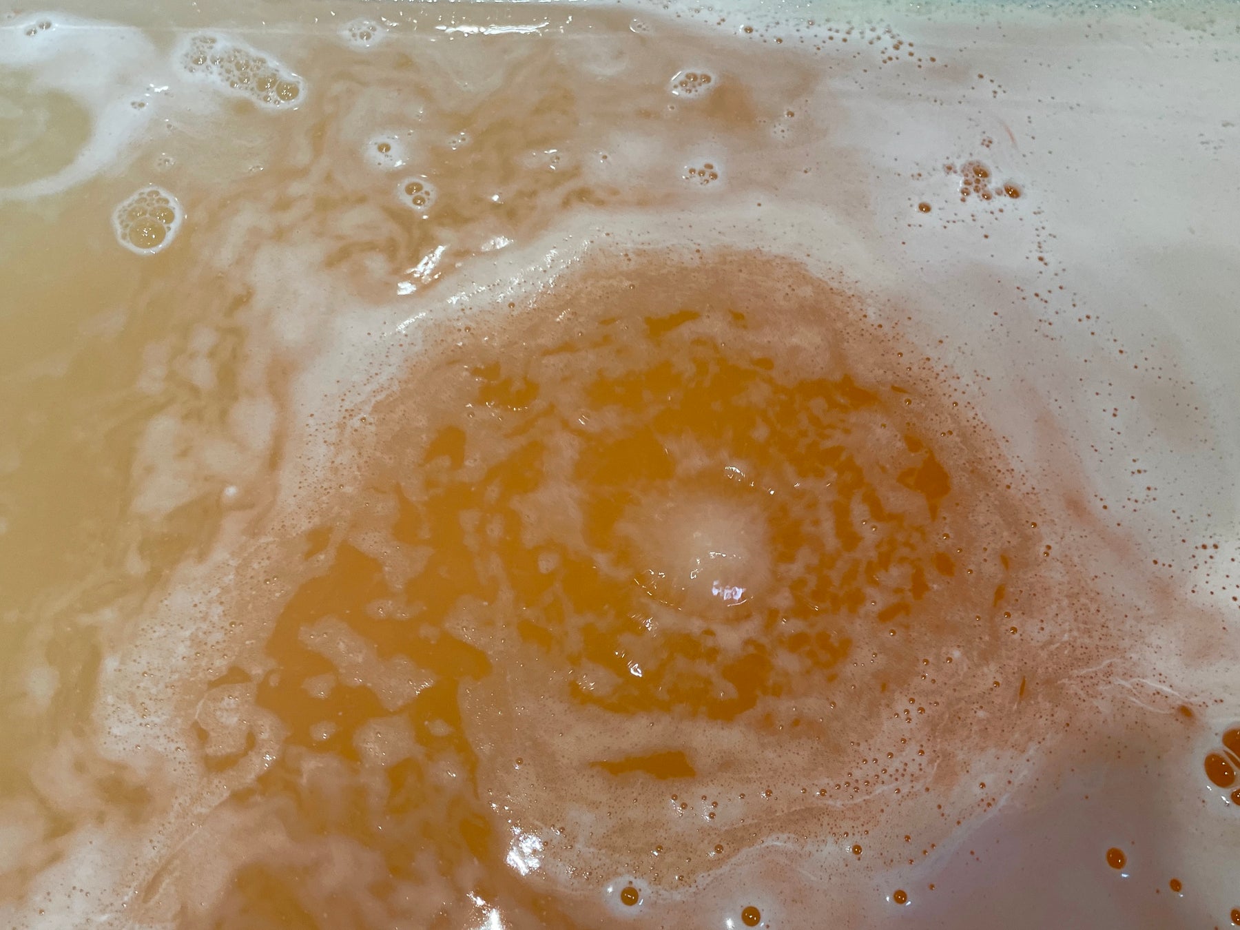 Not suitable for children under 3 years old. Do not handle bath bombs when in use as may cause temporary skin staining. If irritation occurs discontinue use, do not use on broken or irritated skin. Avoid contact with eyes.
